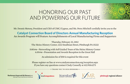 Buchanan Ingersoll & Rooney is a proud sponsor of Catalyst Connection's Annual Manufacturing Reception, which will be held on February 23rd. The evening will celebrate the people and companies that power southwestern Pennsylvania's manufacturing sector.